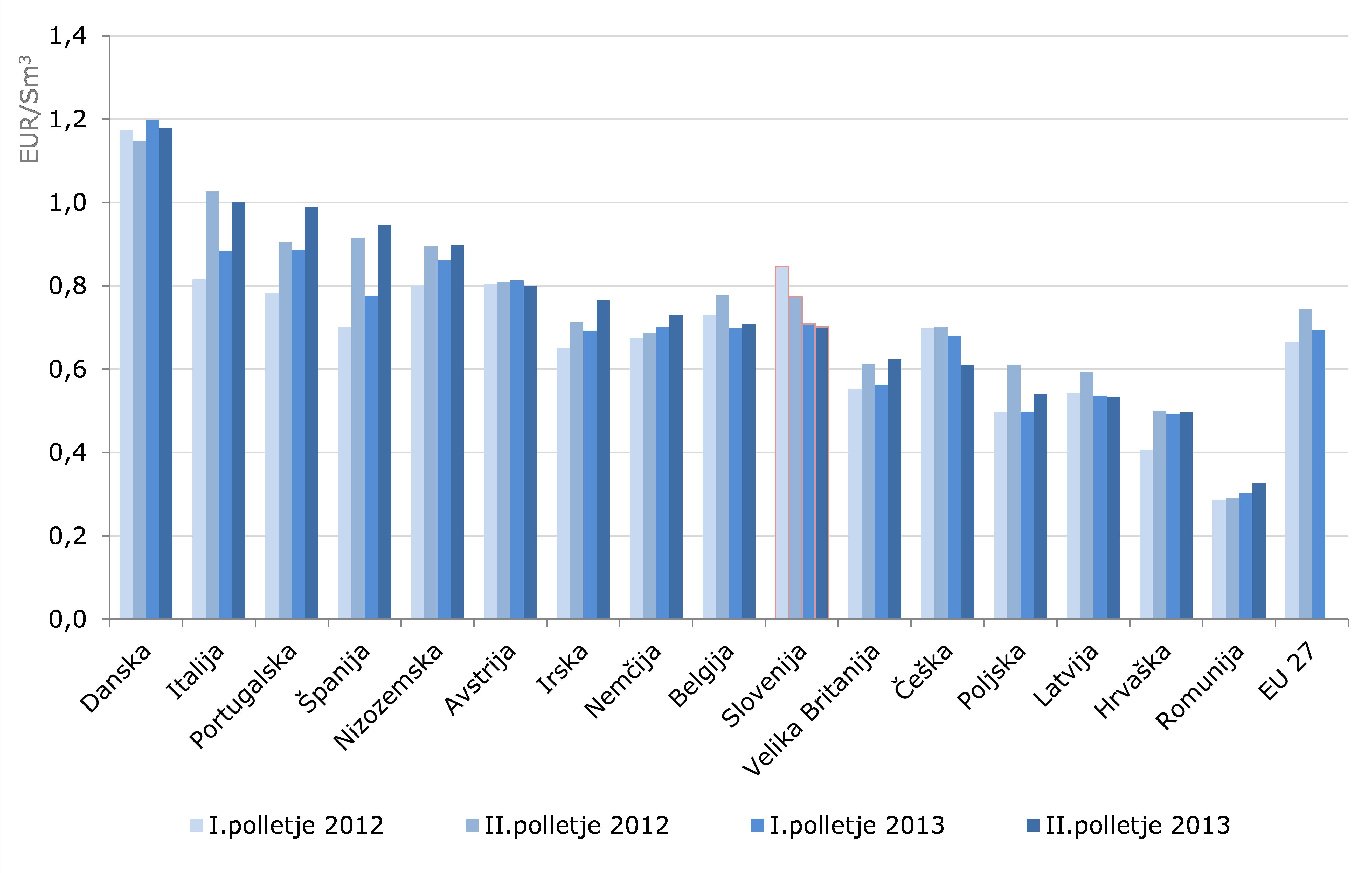 Da. Z dodatnim znižanjem končne cene zemeljskega plina v letu 2013 se je končna cena zemeljskega plina v Sloveniji tesno približala povprečni končni ceni zemeljskega plina v 27 državah članicah EU.
