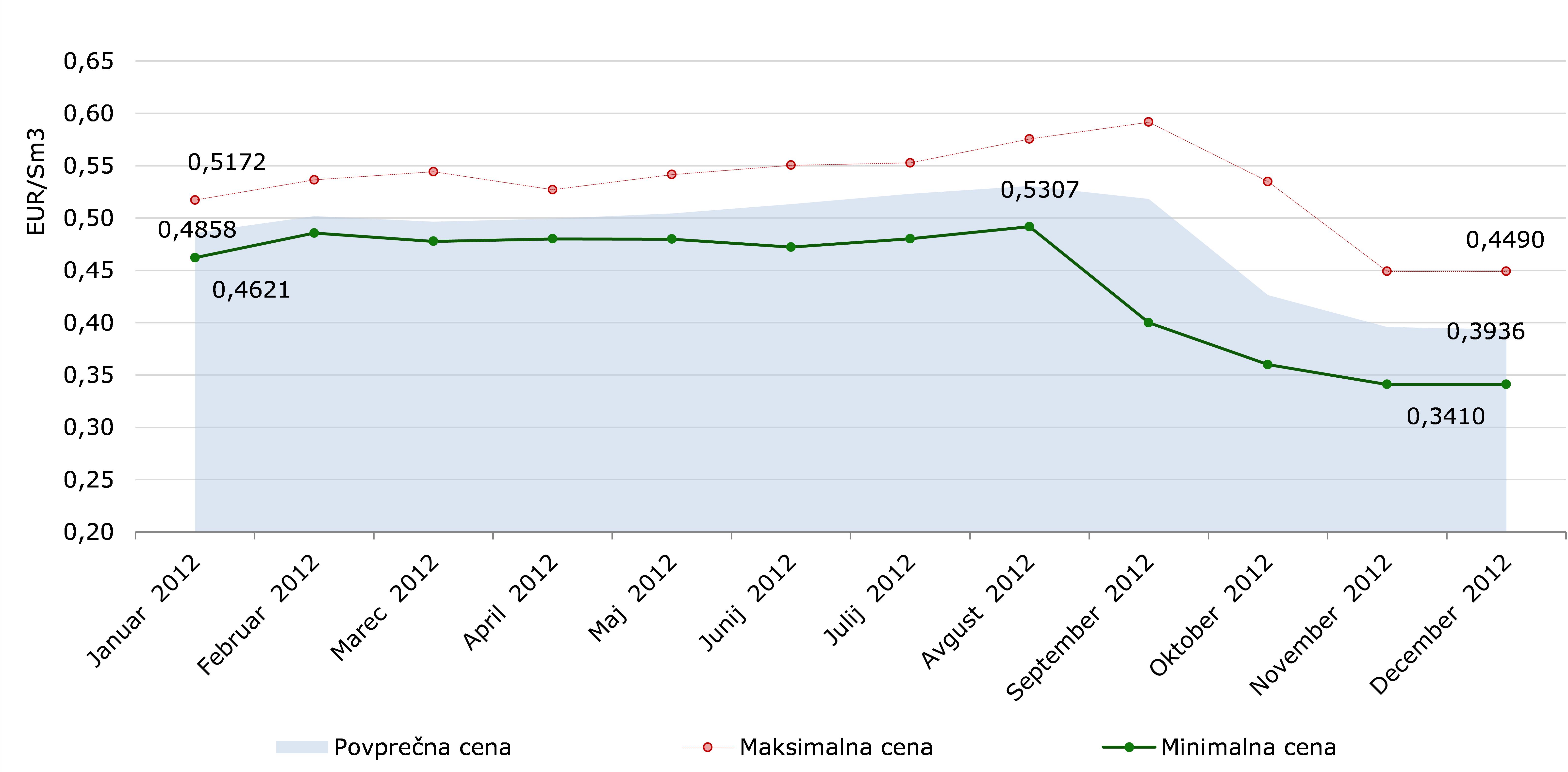 V večini držav EU so se leta 2012 končne maloprodajne cene zemeljskega plina za gospodinjske odjemalce z letno porabo od 529 do 5.287 Sm3 zviševale. Slovenija se je z znižanjem cen v drugem polletju leta 2012 sicer približala povprečni ceni zemeljskega plina v državah EU, vendar je bila še vedno 8 odstotkov nad povprečjem 27 držav EU.